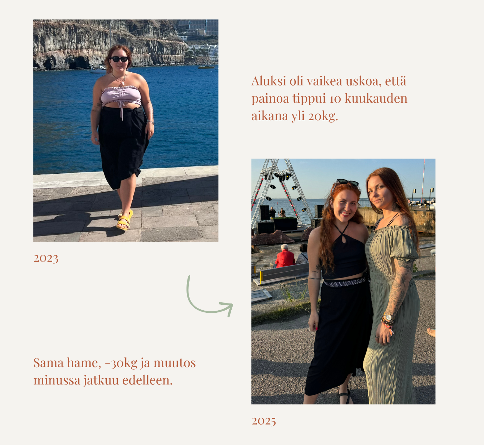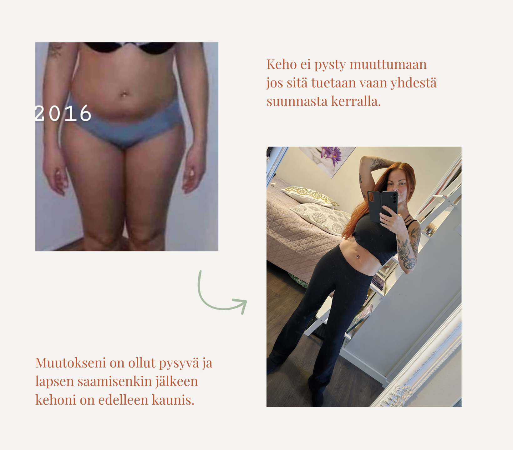 Oon herkistynyt kuuntelemaan kehon viestejä hyvin tarkkaan ja tekemään sen pohjalta päätöksiä itseni parhaaksi. Tunnen päässeeni vieläkin lähemmäs itseäni 🙏"